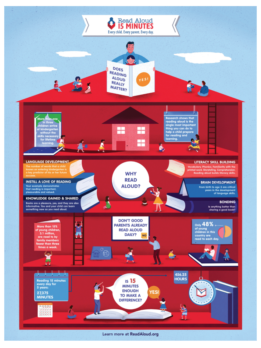 In addition to being a Read Aloud 15 partner, I encourage read aloud time for children of all ages and families. My current community outreach activities include:
